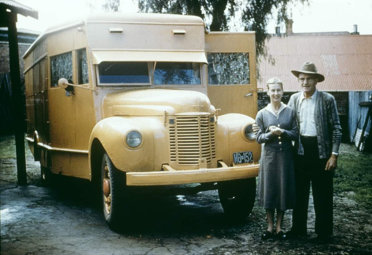 Andrew and Inge Grinke with their travelling shop about to head north, 1957.