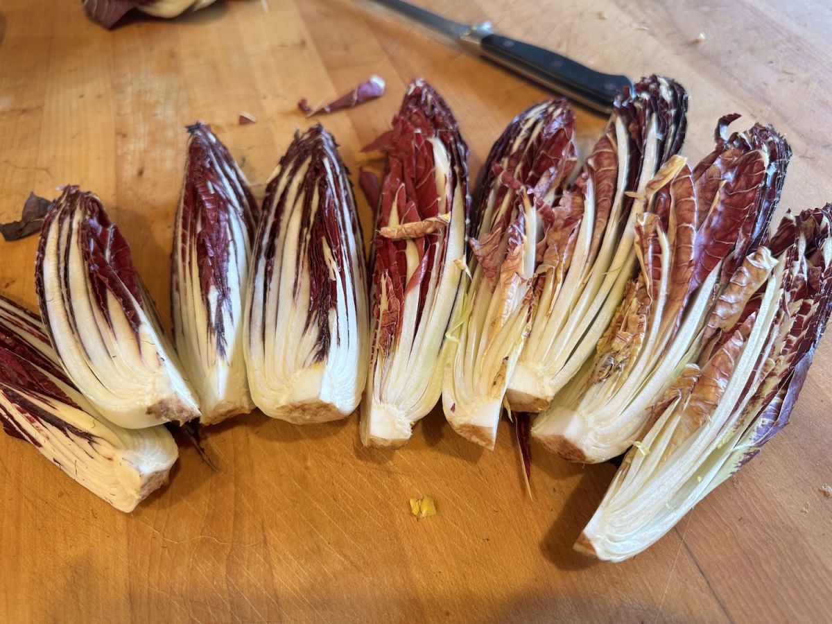 Cut the radicchio in quarters lengthwise, leaving the root end intact. Mix all glaze ingredients together.