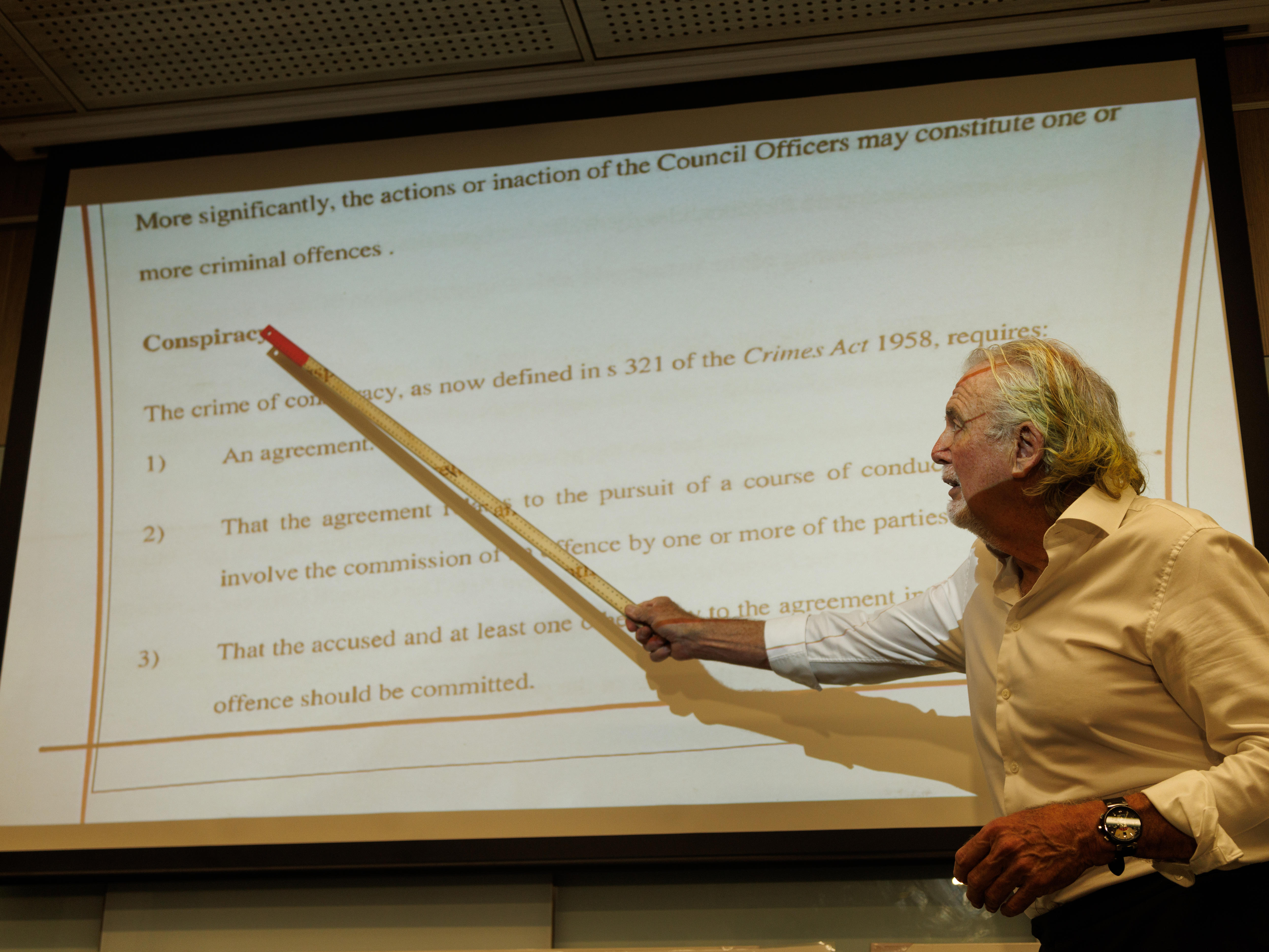 Much of the presentation was related to urban planning and development, and did not directly address the claims levelled at Mr Woodman.