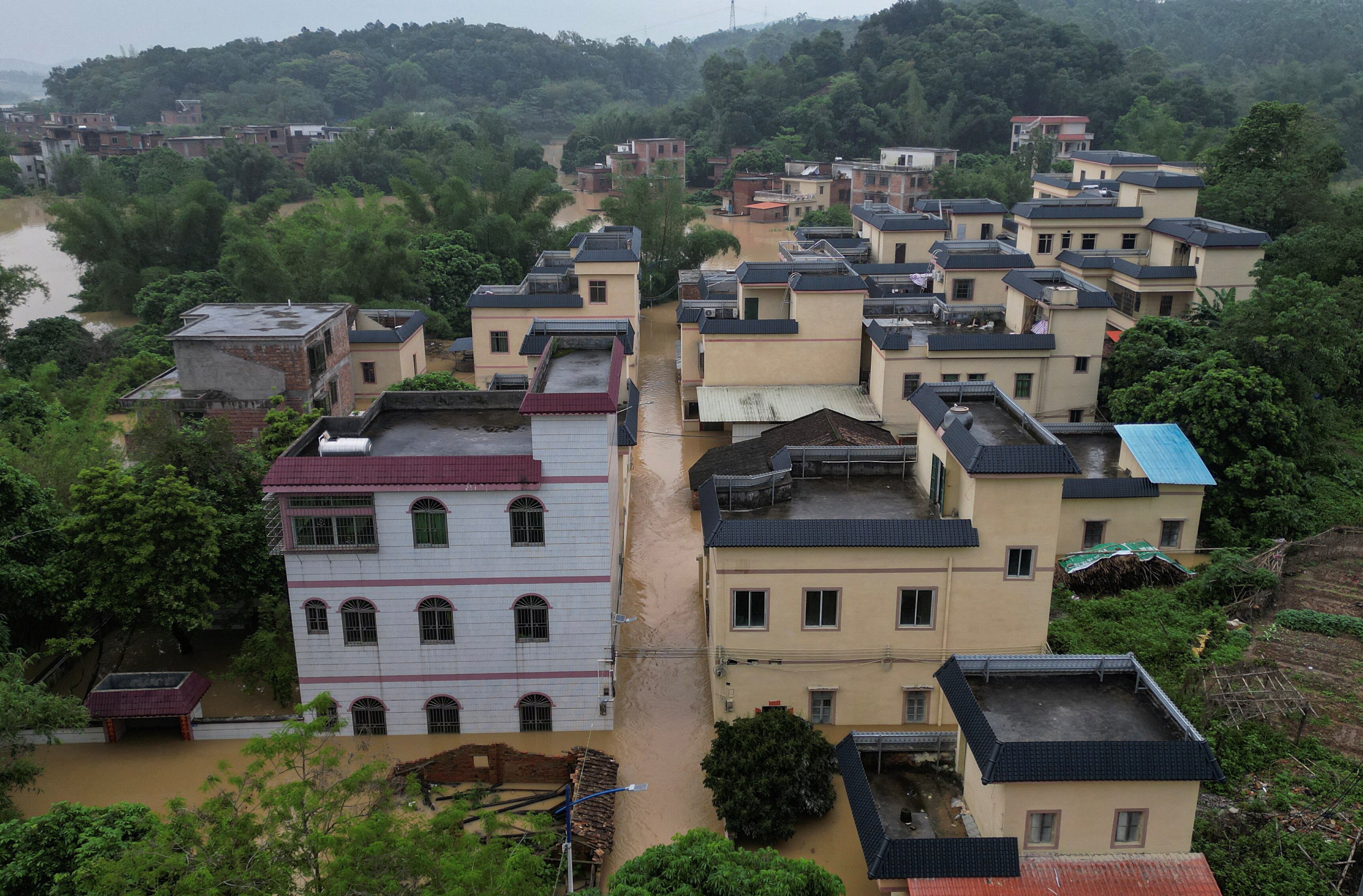 Over the weekend, the Bei River, a tributary of the Pearl River running through Qingyuan, broke its banks and submerged some houses and shops. Rescuers tackled muddy waters, neck-high in some areas, to extract residents.
