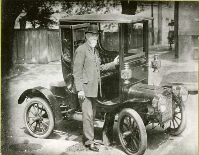Henry Leland, founder of Cadillac, with his 1905 Cadillac “Osceola,” the first fully enclosed car built by Cadillac. Some other photos: https://bit.ly/3THyEPM
