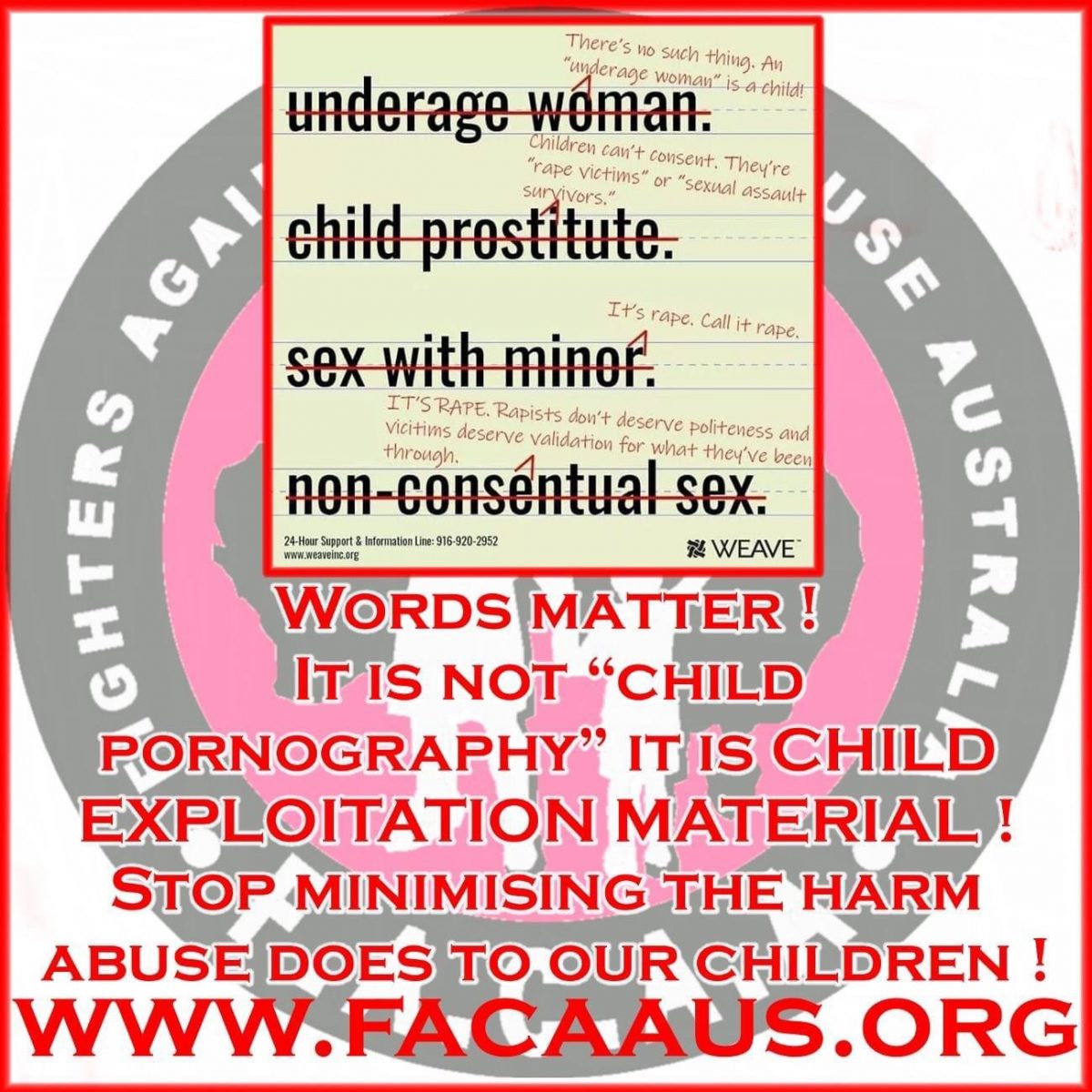 Since FACAA started back in 2010, we have campaigned to use the words “CHILD ABUSE IMAGES.” Which thankfully, mainstream media did get a hold of and some changes have been made, but still we have a long way to go when it comes to people discussing this topic, and when it is reported internationally.